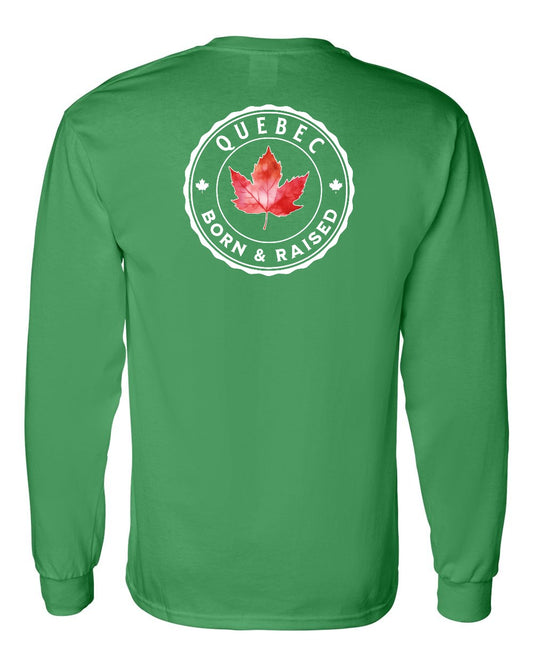 Born and Raised Quebec Left Chest and Back Long Sleeve - Gildan Canada (sewn Internationally)