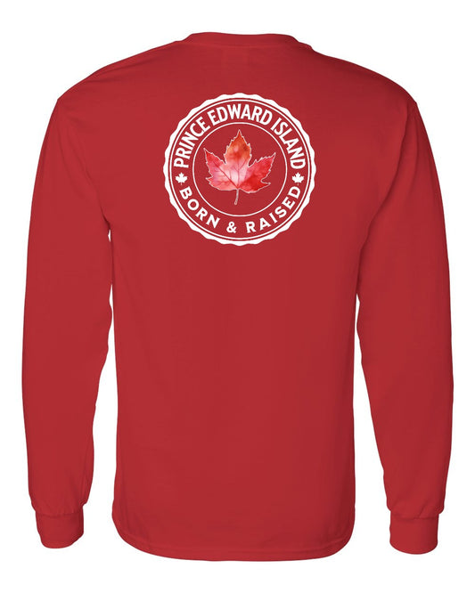 Born and Raised Prince Edward Island Left Chest and Back Long Sleeve - Gildan Canada (sewn Internationally)