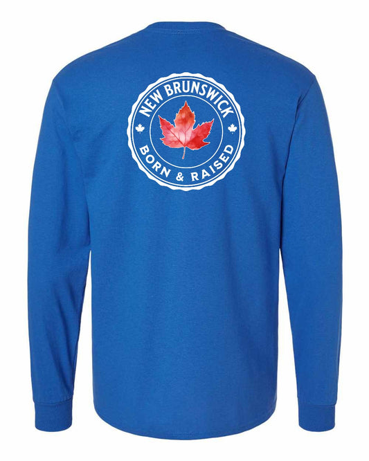 Born and Raised New Brunswick Left Chest and Back Long Sleeve - Gildan Canada (sewn Internationally)