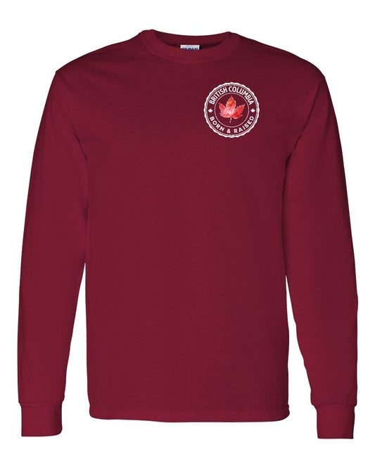 Born and Raised British Columbia Left Chest and Back Long Sleeve - Gildan Canada (sewn Internationally)