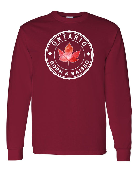 Born and Raised Ontario Left Chest Long Sleeve - Gildan Canada (sewn Internationally)