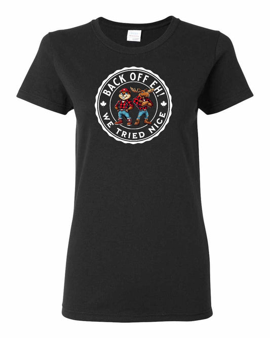 Back Off We Tried Nice Full Front Women's Tee - Gildan Canada (sewn Internationally)