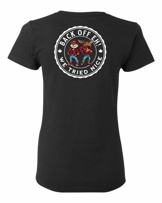 Back Off We Tried Nice Left Chest and Back Women's Tee - Gildan Canada (sewn Internationally)