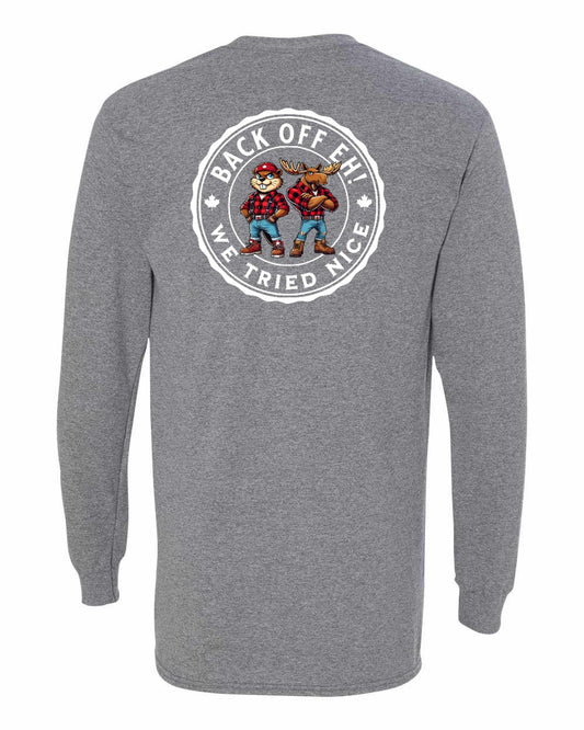 Back off Eh ! We Tried Nice Left Chest and Back Long Sleeve - Gildan Canada (sewn Internationally)