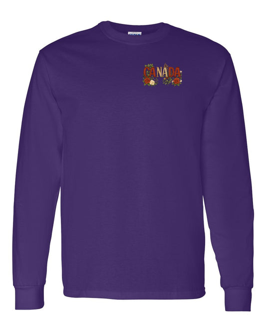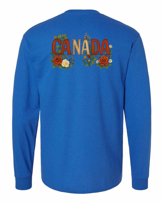 Canada Flowers Left Chest and Back Long Sleeve - Gildan Canada (sewn Internationally)