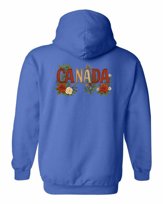 Canada Flowers Left Chest and Back Zip Hoodie - Gildan Canada (sewn Internationally)