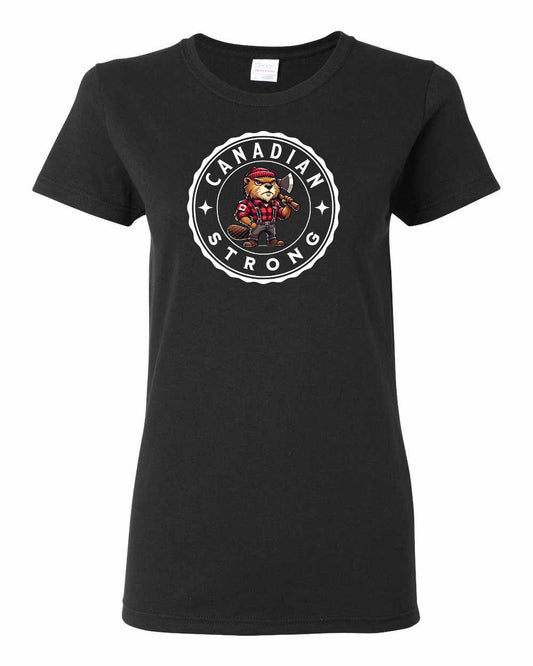 Canadian Strong Beaver Left Chest and Back Women's Tee - Gildan Canada (sewn Internationally)