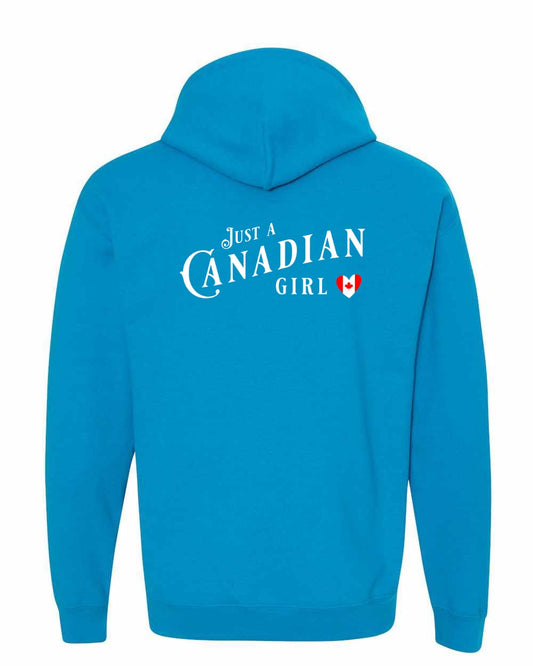 Just A Canadian Girl (Heart Flag Full) Left Chest and back Zip Hoodie - Gildan Canada (sewn Internationally)