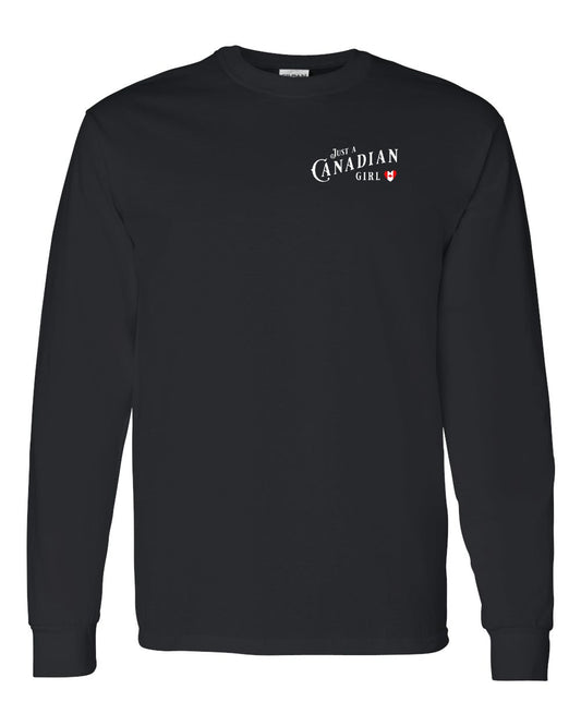 Just A Canadian Girl (Heart Flag Full) Left Chest and Back Long Sleeve - Gildan Canada (sewn Internationally)