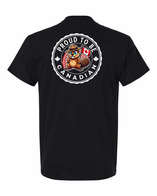 Proud to Be Canadian Beaver Left Chest & Back Men's Tee - Gildan Canada (sewn Internationally)