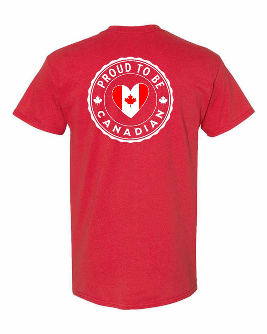 Proud to be Canadian Proud to be Heart Flag Left Chest and Back Men's Tee - Gildan Canada (sewn Internationally)