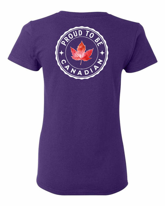 Proud to be Canadian Leaf Left Chest and Back Women's Tee - Gildan Canada (sewn Internationally)