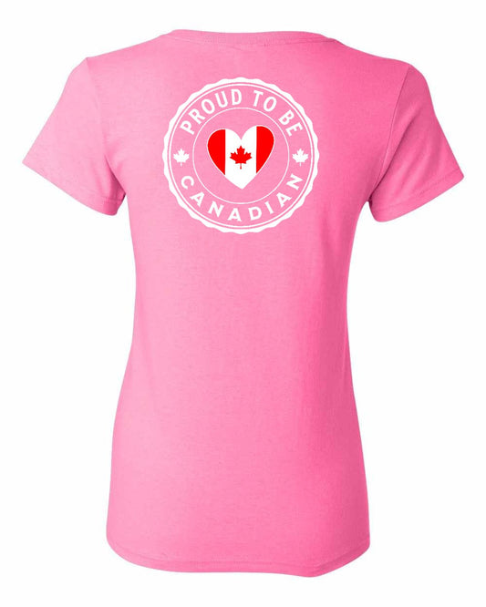 Proud to Be Canadian Heart Left Chest And Back Women's Tee - Gildan Canada (sewn Internationally)