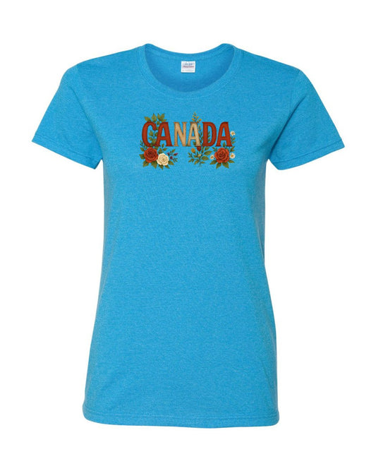 Canada Rose Design Tee Full Front Women's Tee - Gildan Canada (sewn Internationally)