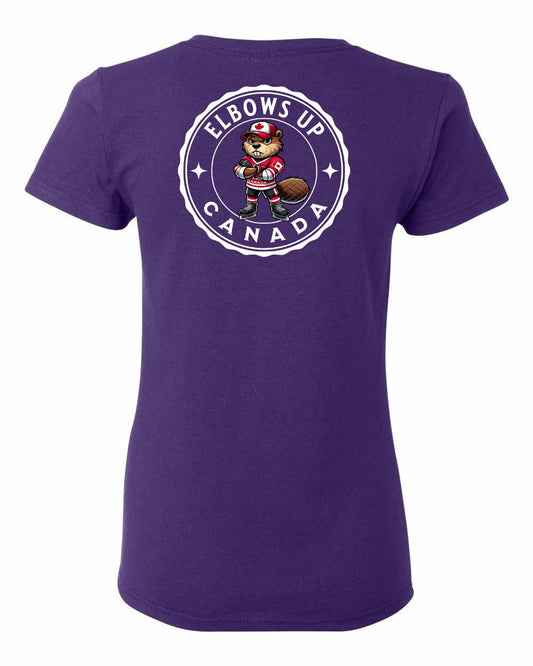 Elbows Up Beaver Left Chest and Back Women's Tee - Gildan Canada (sewn Internationally)
