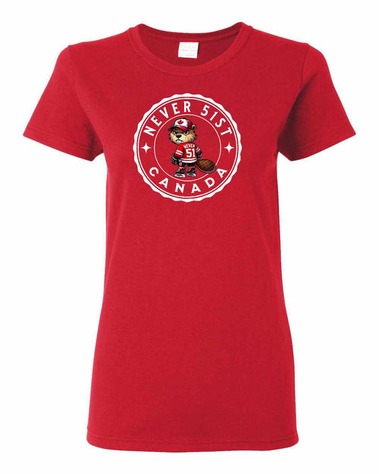 Never 51st Beaver Full Front Women's Tee - Gildan Canada (sewn Internationally)