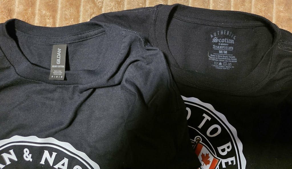 I purchased this shirt about a month ago. Very nice qualityT shirt. When I opened the package their was a hand written note asking if I liked the shirt. Would definitely support this Canadian Vendor from The East Coast in the future!!!