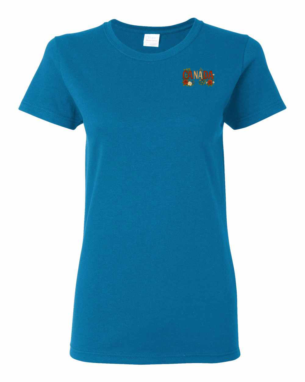 Canada Rose Design Tee Left Chest and Back Women's Tee - Gildan Canada (sewn Internationally)