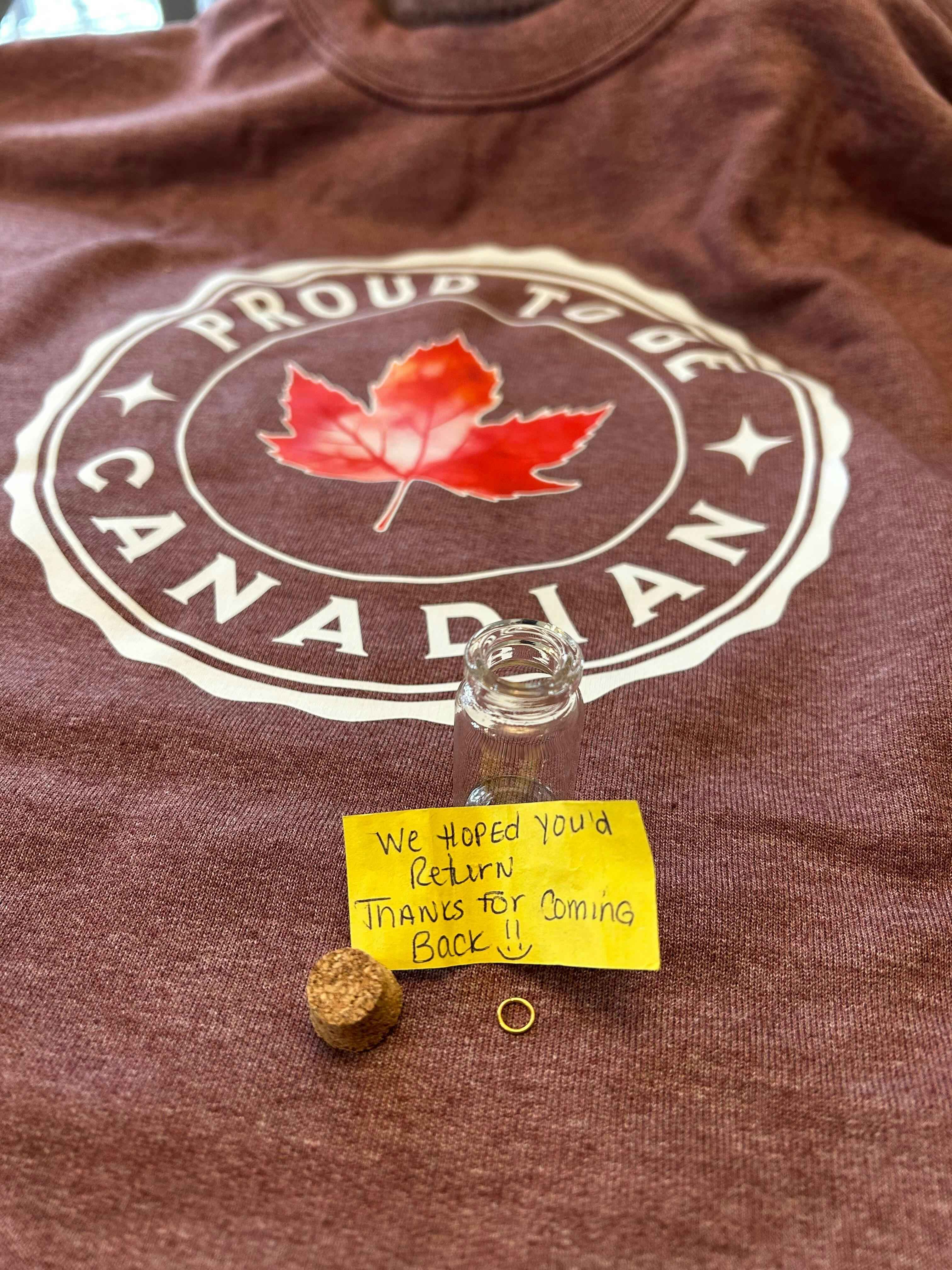 We ordered a few t shirts, zip up hoodie and hats. We loved them so much that we made a second order. The quality is good and we have been happy with the product and service. In our first order there was a hand written note thanking us for our purchase and then with our second order we received a “message in a bottle” - so sweet. We are so happy to support not only a Canadian company, but a Canadian company with such a personal touch!