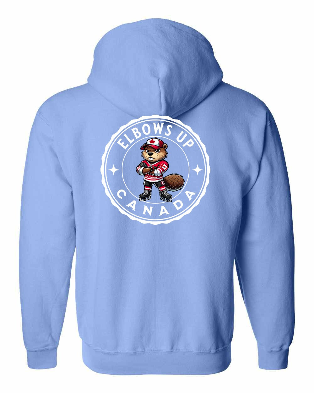 Elbows up Beaver Left Chest and Back Zip Hoodie - Gildan Canada (sewn Internationally)