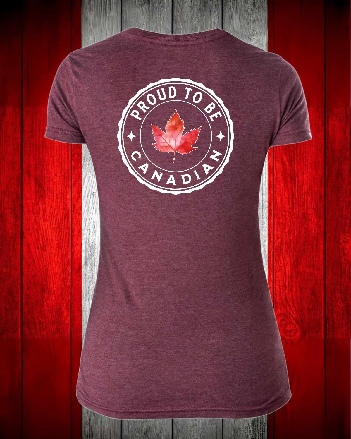 Proud to be Canadian leaf Left Chest And Full Back Women's V-neck Stanfield's Tee